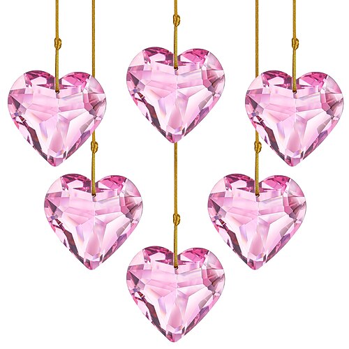 6 pezzi di ornamenti di cristallo a forma di cuore rosa di colore misto per San Valentino, ornamenti a forma di cuore, cristalli arcobaleno pendenti, ornamenti pendenti per finestre, decorazioni per