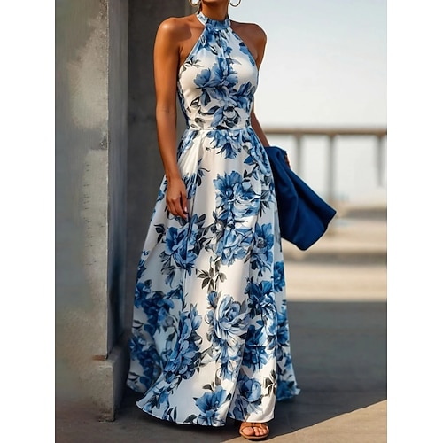 Per donna Abito maxi Abito a trapezio Vestito all'americana Vacanza Casual All'aperto Uscire Vestibilità comoda Floreale Senza Maniche All'americana Blu Estate Primavera