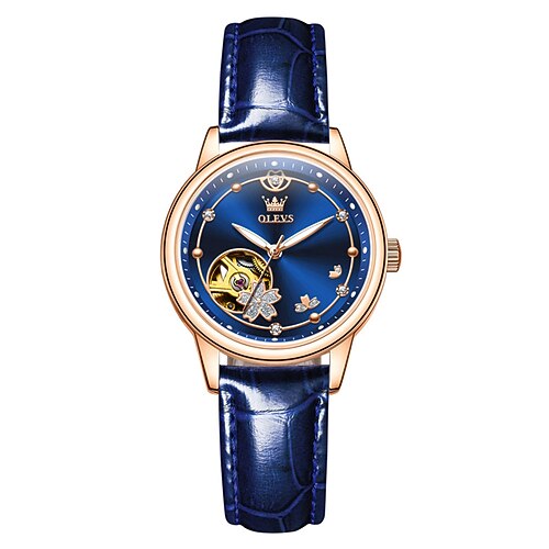 OLEVS Da donna Orologio meccanico Lusso Grande quadrante Strass Affari Scheletro cavo Luminoso Sub e immersioni Impermeabile Pelle Cinturino in acciaio inossidabile Guarda
