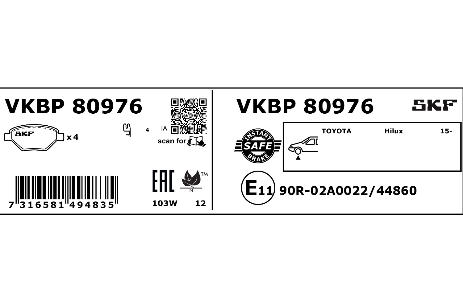 SKF Bremsbelagsatz, Scheibenbremse VKBP 80976 vorne rechts links für TOYOTA 04465-0K420 04465-0K350
