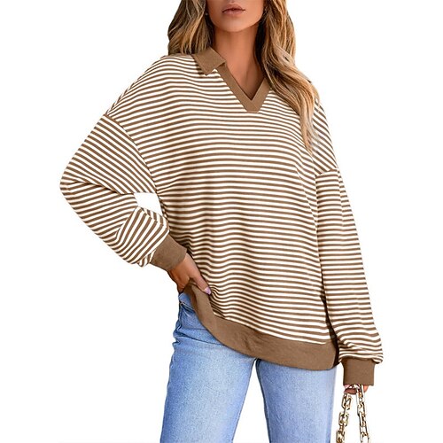 Per donna Maglietta A righe Moda Elegante Classico Manica Lunga Scollo a V Top Regolari Quotidiano Uscire Weekend Blu Nero Verde chiaro Rosso Verde Primavera Autunno