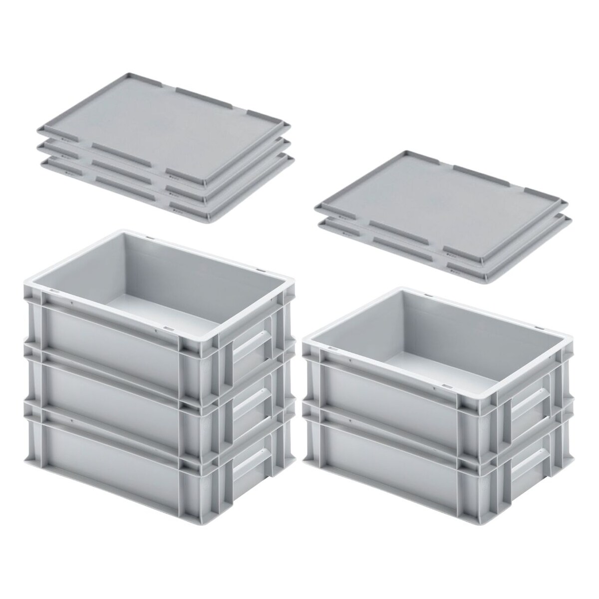 PROREGAL SuperSparSet 16x Eurobox NextGen Color mit Auflagedeckel & Verschlüsse, HxBxT 12x30x40cm, 11L, Grau, Griffe grün offen, Eurobehälter, Box