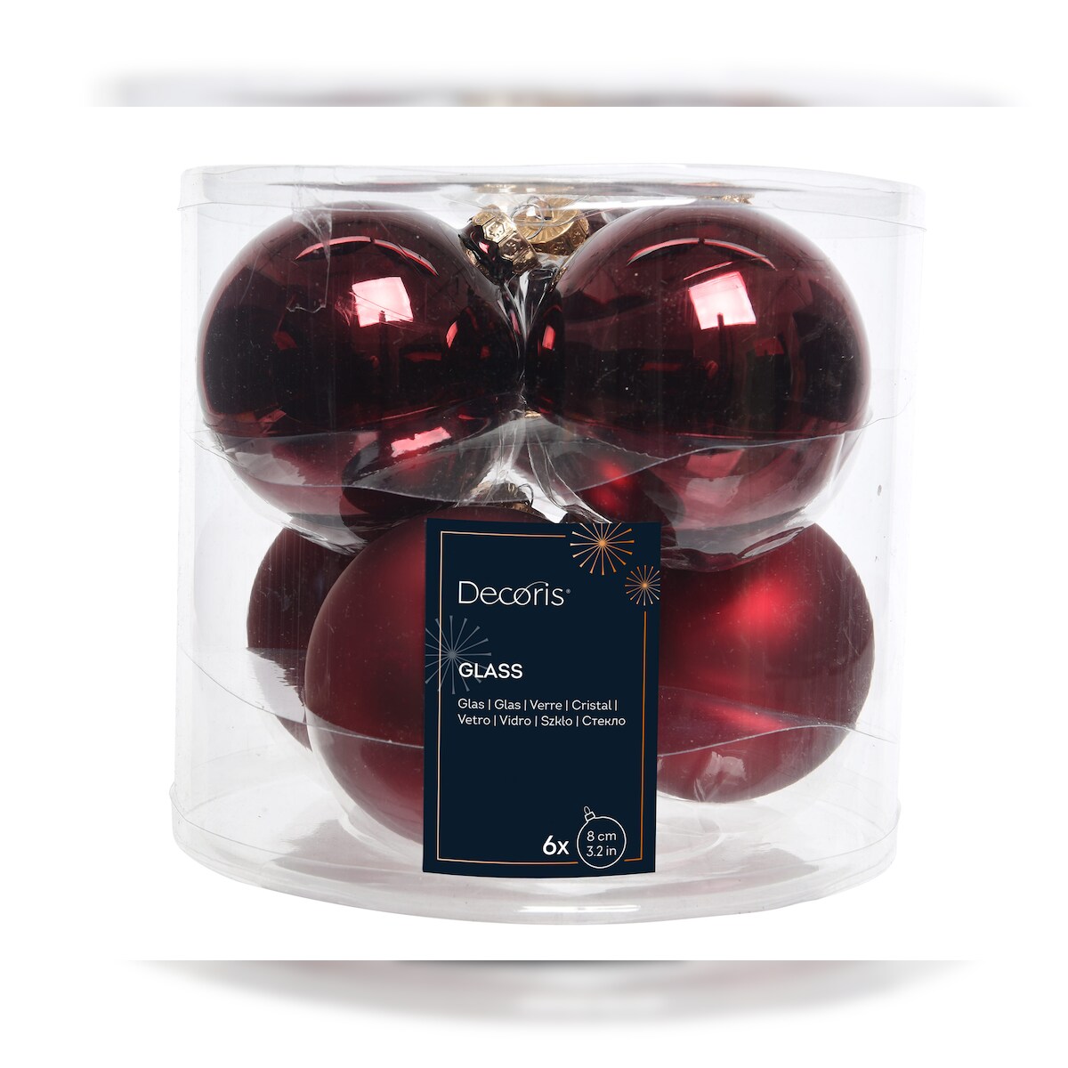 Christmas Decorations 6 Weihnachtskugeln 8cm Glas Anhänger uni Weihnachtsbaumkugeln bordeaux weinrot