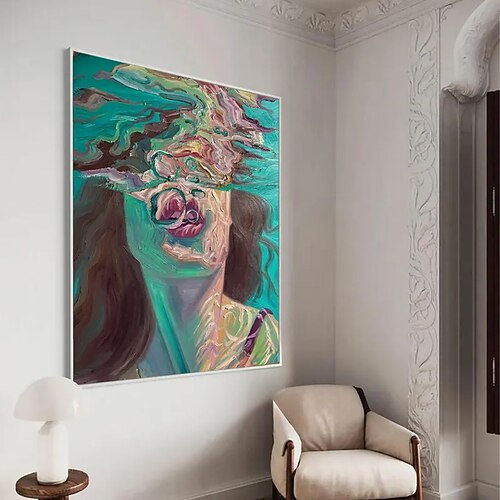 pittura subacquea arte murale subacquea ragazza che nuota pittura arte astratta verde immersioni nell'oceano donna sensuale che nuota tela fatta a mano arte murale