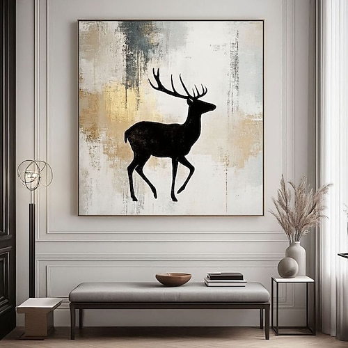 dipinto a mano grande cervo astratto dipinto nero beige testurizzato animale di grandi dimensioni arte murale soggiorno arte astratta tela arte