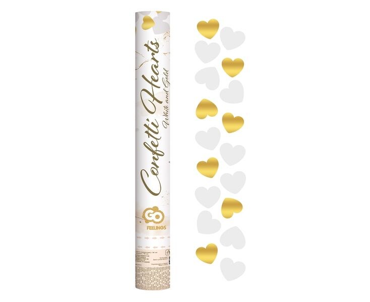 Konfettikanone gold weiß Herzen 40 cm