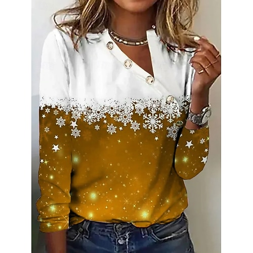 Maglietta da donna Henley pullover ombré fiocco di neve pullover rosso bianco maniche lunghe comfort casual top per autunno inverno