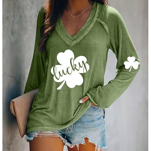 Giorno di San Patrizio Festa di San Patrizio Per donna Maglietta Trifoglio Lettera Moda Manica Lunga Scollo a V Top Regolari Casuale Giorno di San Patrizio Stampato Blu Bianco Rosa Verde Grigio