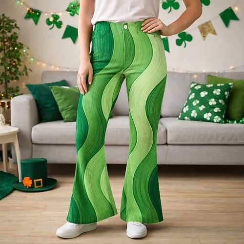 San Patrizio 2026 Retrò Vintage Anni '70 Pantaloni Pantaloni a gamba larga Hippie Disco Vita alta Costume Per donna Giorno di San Patrizio Feste Festival Adulti Pantaloni