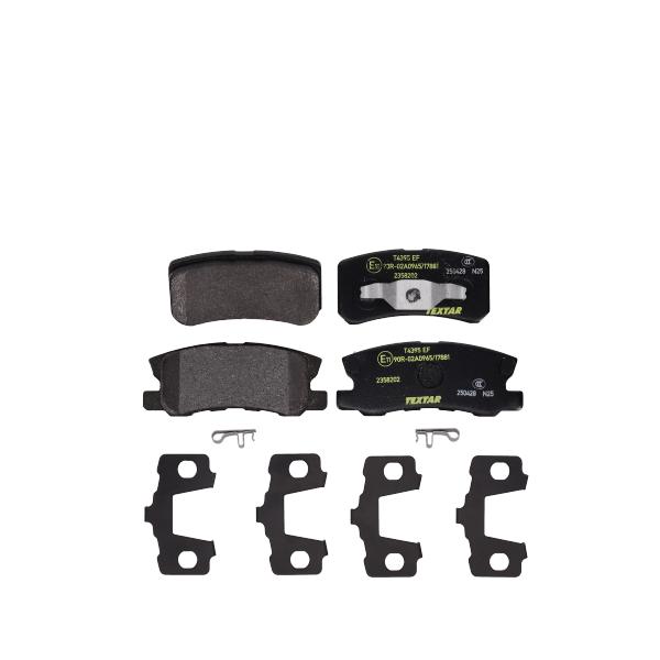 TEXTAR Bremsbelagsatz, Scheibenbremse 2358202 hinten rechts links mit Zubehör für MITSUBISHI PEUGEOT DODGE JEEP CITROËN LANCIA (GAC) CHRYSLER K6802026