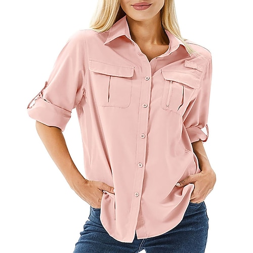 Per donna Blusa Semplice Elegante Manica Lunga Scollo a V Top Regolari Quotidiano Ferie Uscire Tasca Nero Bianco Rosa Blu marino Azzurro cielo Estate Primavera