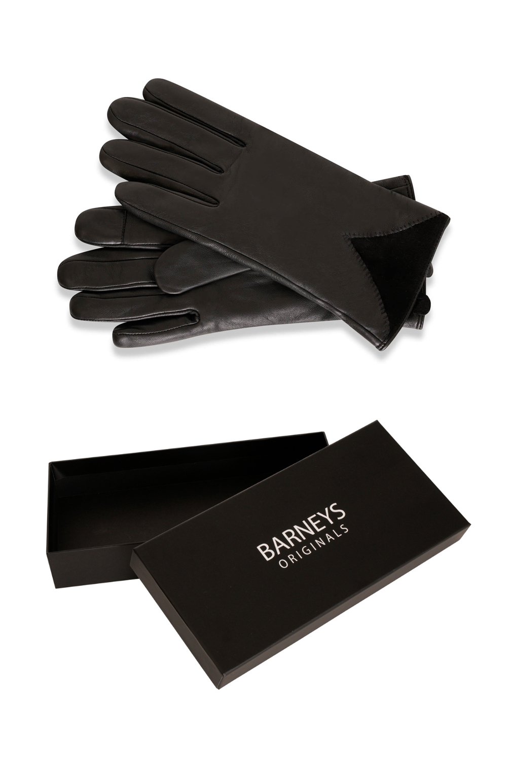 Barneys Originals Womens Gift Boxed Black Leather Gloves With Suede Detail - Size Small/medium | Barneys Originals Sale | Discount Designer Brands
