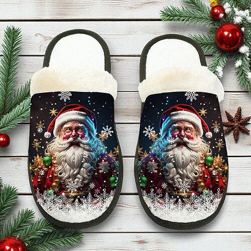 pantofole natalizie da donna a forma di Babbo Natale - design con allegro volto di Babbo Natale e interno in peluche, ultra comode, ideali per rilassarsi a casa, la vigilia di Natale e le riunioni festive