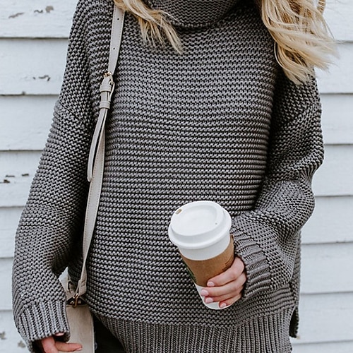 Per donna Felpa Maglione Elegante Vintage Moda Tinta unica Dolcevita Lavorato a maglia Manica Lunga Top Regolari Maglia All'aperto Quotidiano Ferie Nero Rosa Autunno Inverno