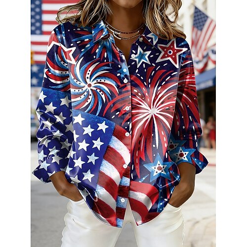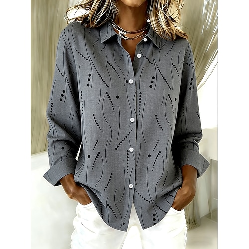 Per donna Camicia Grafico Geometrico Vintage Elegante Moderno Manica Lunga Colletto a Camicia Top Regolari Quotidiano Bottoni Stampato Bianco Marrone chiaro Viola Fucsia Cachi Primavera Inverno