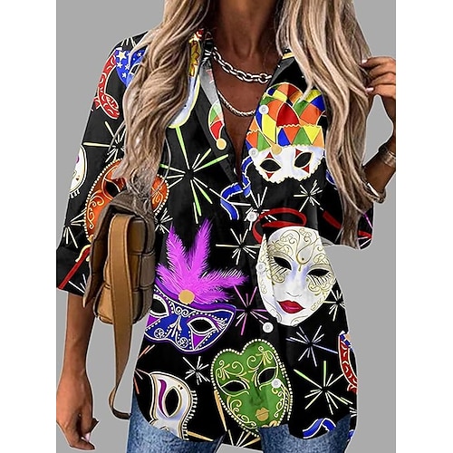 Carnevale Per donna Camicia Blusa Grafico Astratto Vintage Elegante Casual Manica Lunga Colletto a Camicia Top Regolari Quotidiano Bottoni Stampato Nero Giallo Viola Estate Primavera Autunno