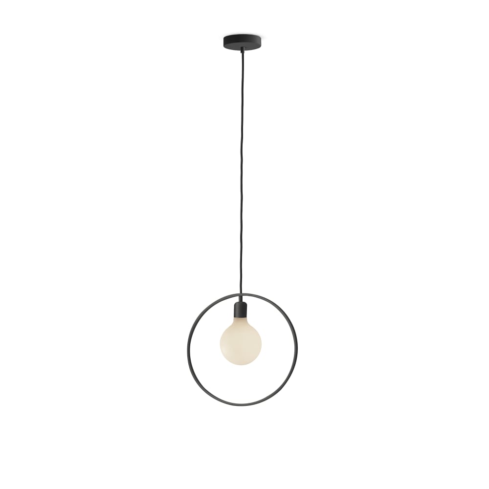 Lampada a sospensione anello nero con lampadina led porcellana
