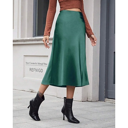 Per donna Linea A Elegante Moda Casual Midi Vita Alta Gonne Semplice Patchwork Micro-elastico Quotidiano Streetwear Nero Rosa Rosa polverosa Verde scuro Estate Spandex Poliestere