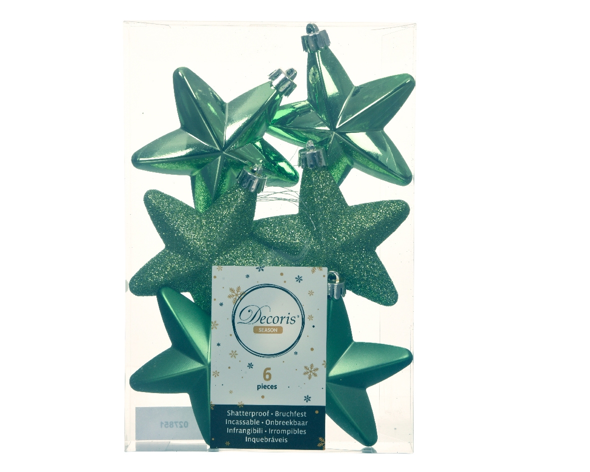 6 Sterne 7cm Christbaumschmuck Kunststoff Weihnachtsbaumschmuck Anhänger grün