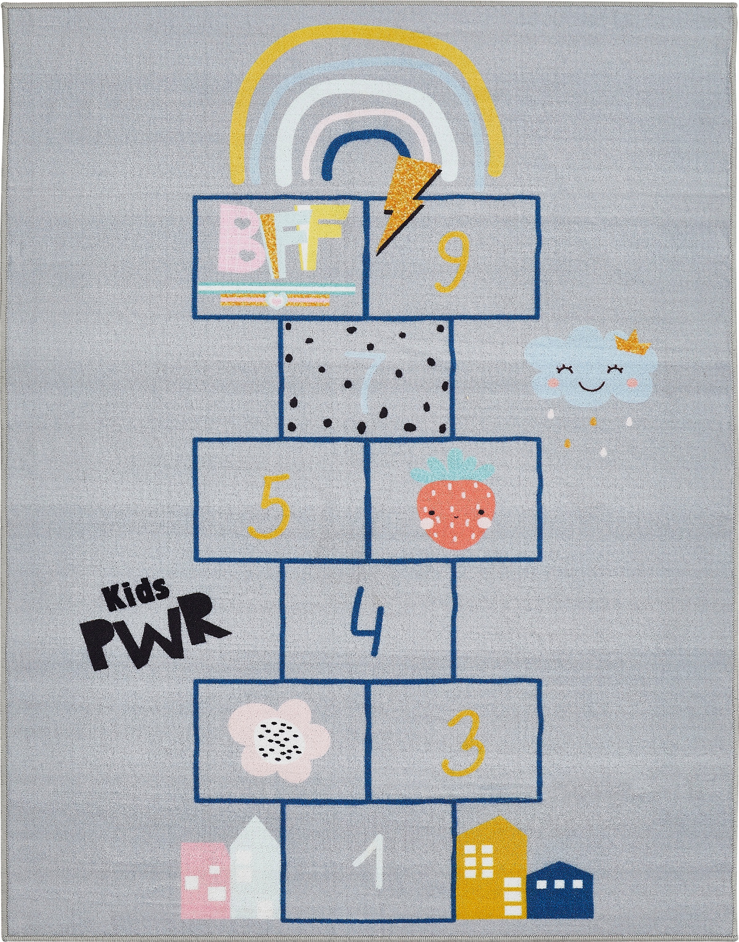 Kinderteppich ANDIAMO "Hüpfkästchen", grau, B:133cm H:6mm L:170cm, Polyamid, Teppiche, Kurzflor, Spielteppich, Spielmotiv Hüpfkästchen "Himmel & Hölle"