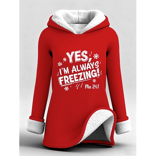 Per donna Felpa con cappuccio Grafico Lettera Caldo Casual Pile Sherpa Manica Lunga Con Cappuccio Top lunghi Streetwear Abbigliamento Quotidiano Casuale Stampato Nero Rosa Rosa scuro Rosso Blu