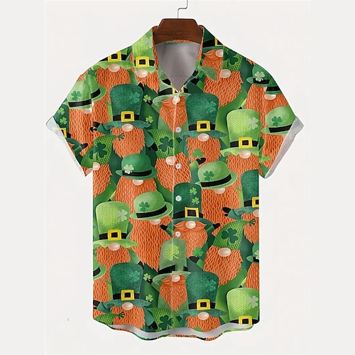 San Patrizio Per uomo A quadrifoglio cappello Cravatta a farfalla Camicia Manica corta Maniche corte Informale Da tutti i giorni Per uscire Fine settimana Autunno Collo ripiegabile Stampa Bottone giù
