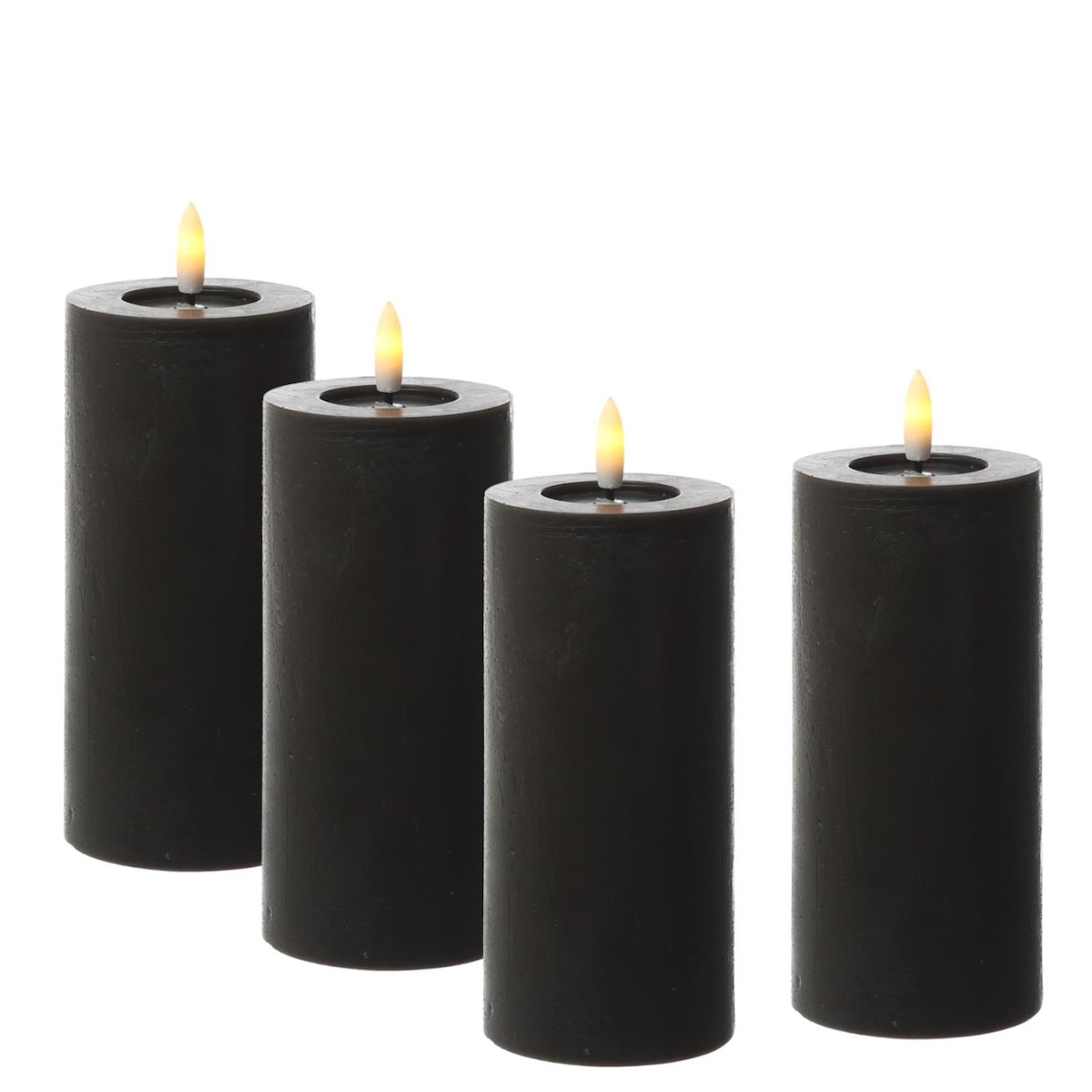 441 LED Kerzen LINA Rustik Optik für Adventskranz 7x15cm Timer schwarz 4er Set