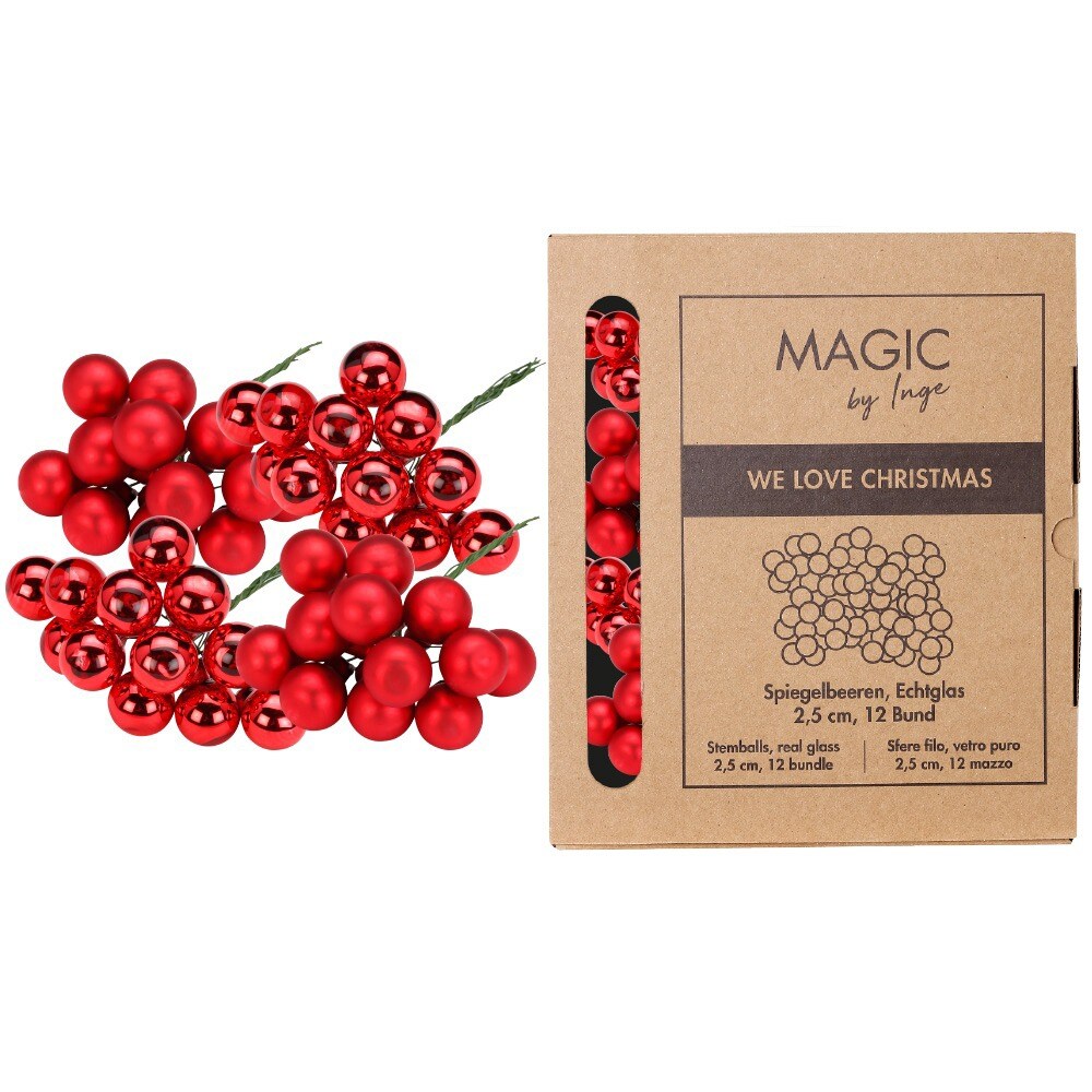 144 Glaskugeln am Draht 2,5cm Weihnachtskugeln Spiegelbeeren zum Basteln rot