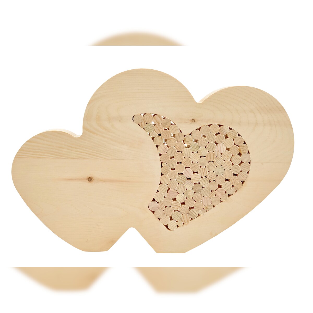 Erst-Holz Großes Doppelherz mit Schlüssel oder Stäben Zirbe unbehandelt massiv Dekoherz V-40.10-046
