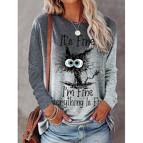 Per donna Maglietta Grafico Lettera Vintage Elegante Classico Manica Lunga Girocollo Top Regolari Quotidiano Stampato Rosa Viola Verde Cachi Grigio Primavera Autunno Inverno
