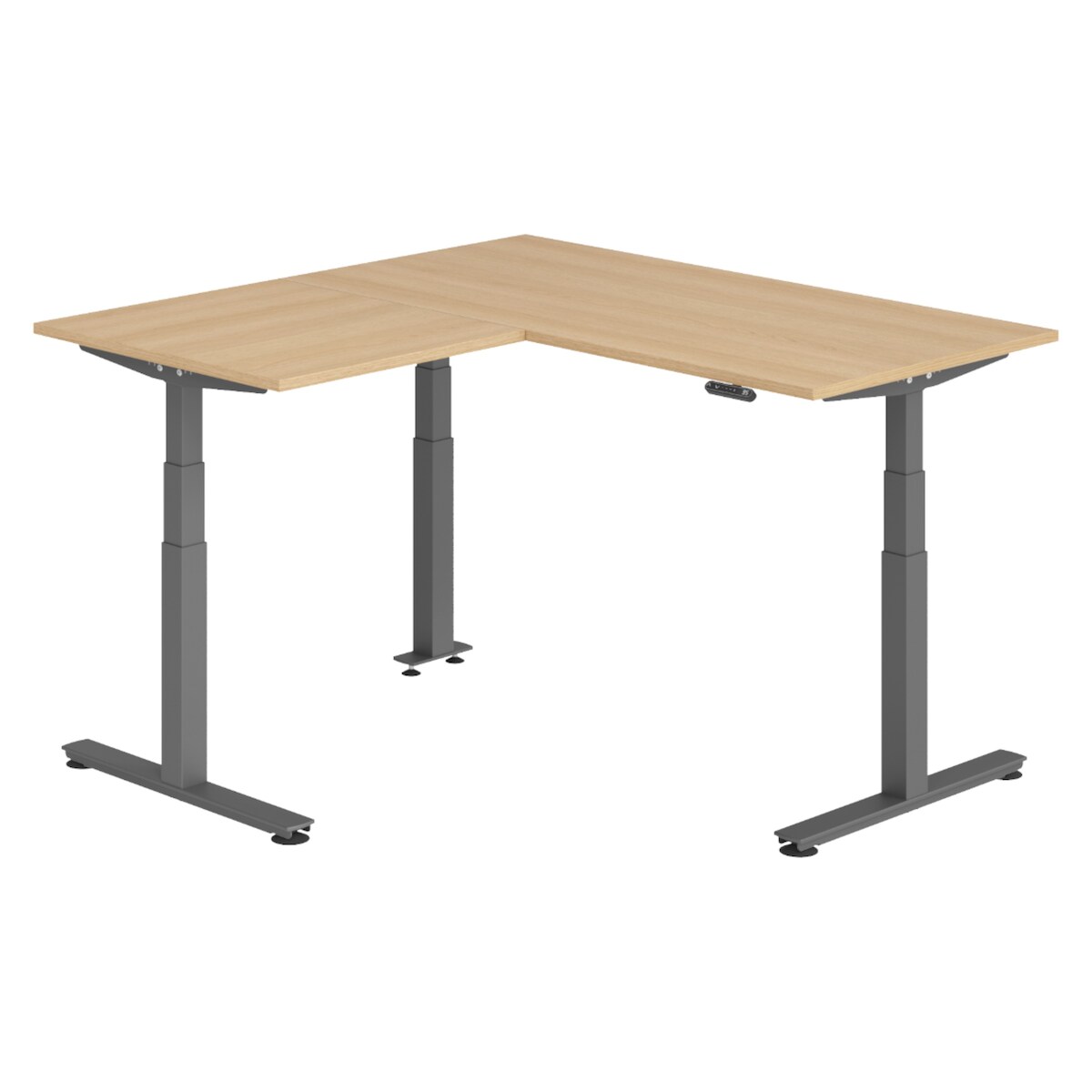 bümö Eckschreibtisch elektrisch höhenverstellbar L-Form: 160 x 160 cm in Eiche, Gestell graphit - Stehschreibtisch mit Memory-Steuerung, elektrischer