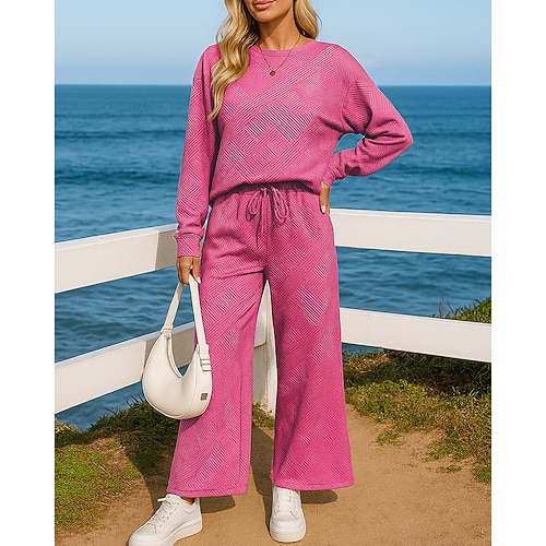 Per donna Elegante Caldo Moda Set da due pezzi Tuta Set di Pantaloni Manica Lunga Manica a Vescovo Girocollo Grafico Lettera Stampato All'aperto Vacanza Quotidiano Nero Rosa Rosa scuro Primavera