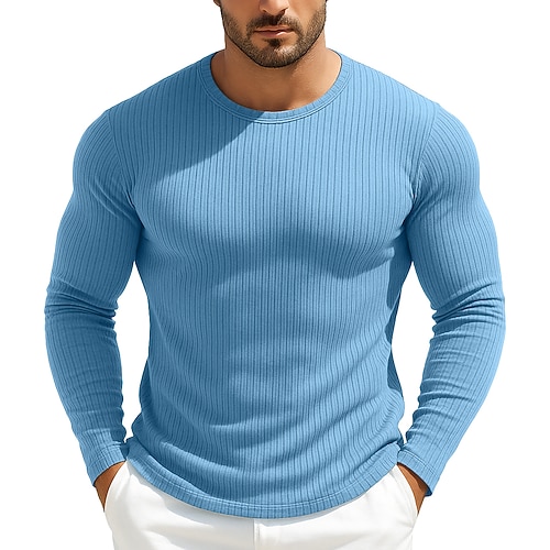 Per uomo Maglietta Maglietta a Maglia a Coste Camicia a Maniche Lunghe Manica Lunga Girocollo Primavera Autunno Tutte le stagioni Semplice Testurizzato Striscia di Fossa Moda Designer Essenziale