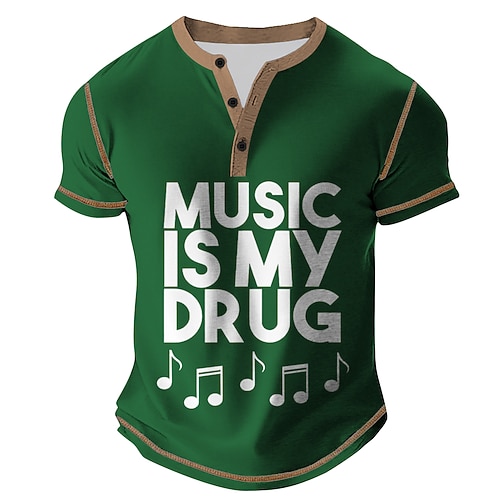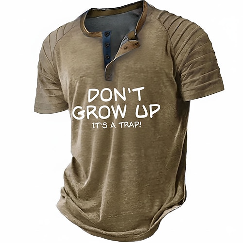 Per uomo Gergo divertente Maglia Henley T-shirt Raglan Manica Corta Moda Designer Casual All'aperto Vacanza Casuale Estate Tutte le stagioni Nero Blu Grigio Cachi Colletto Henley Henley Maglietta