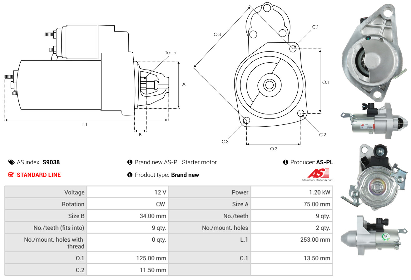 AS-PL Starter S9038 12V für HONDA RNA50 31200-RNA-A51 31200-RNA-A50