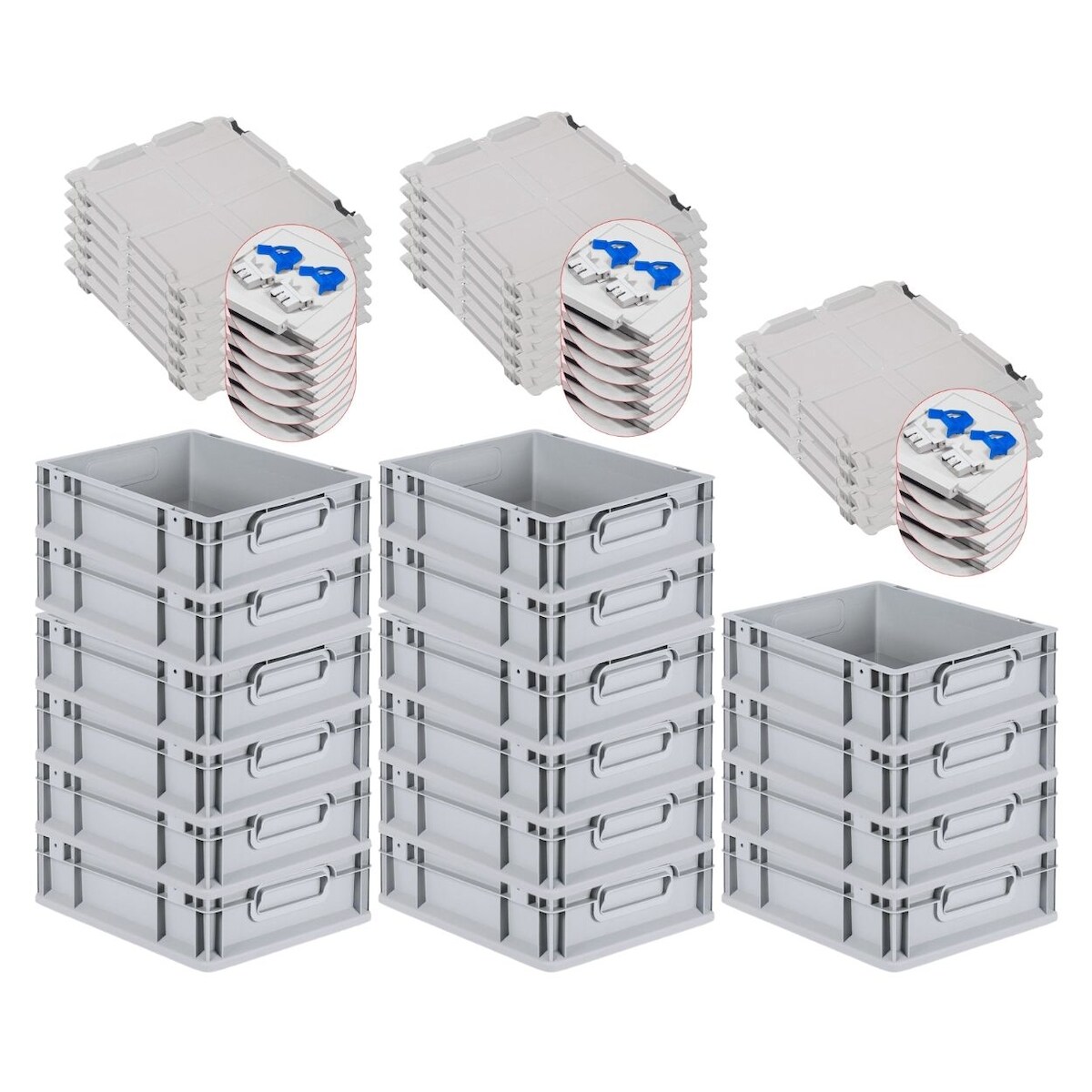 PROREGAL 16x Eurobox NextGen Grip mit Scharnierdeckel & blauen Verschlüssen | HxBxT 12x30x40cm | 11 Liter | Griffe geschlossen | Glatter Boden