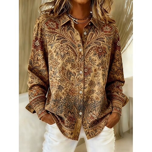 Per donna Camicia Floreale Grafico Paisley Elegante Moderno Casual Manica Lunga Colletto a Camicia Top Regolari Lavoro Stampato Giallo Cachi Beige Primavera Autunno Inverno