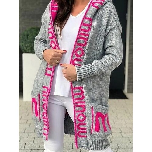 Per donna Felpa Cardigan Elegante Moda Streetwear Lettera Con Cappuccio Tasca Lavorato a maglia Manica Lunga Top lunghi Maglia All'aperto Quotidiano Weekend Nero Arancione Primavera Autunno