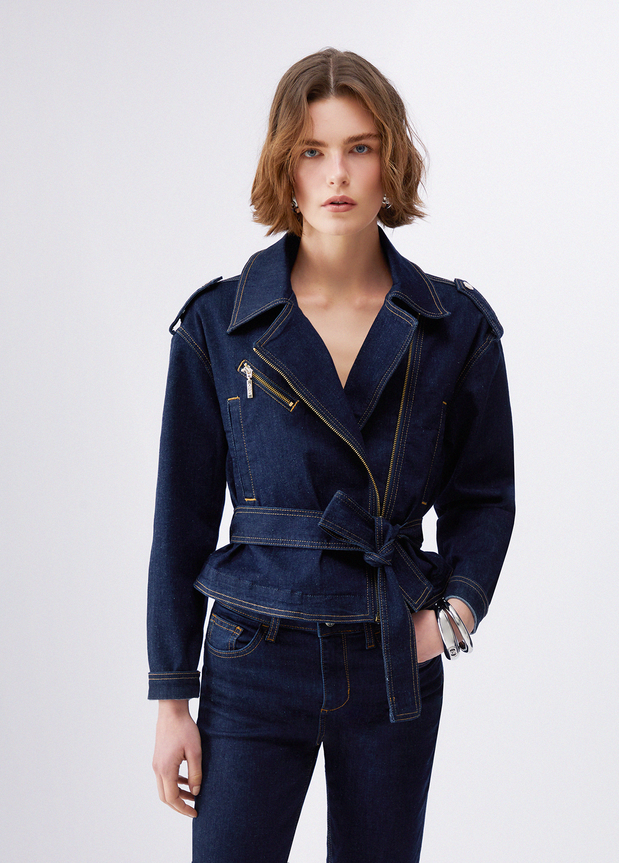 Liu Jo Jeansjacke Mit Gürtel, Dunkles Denimblau, 46