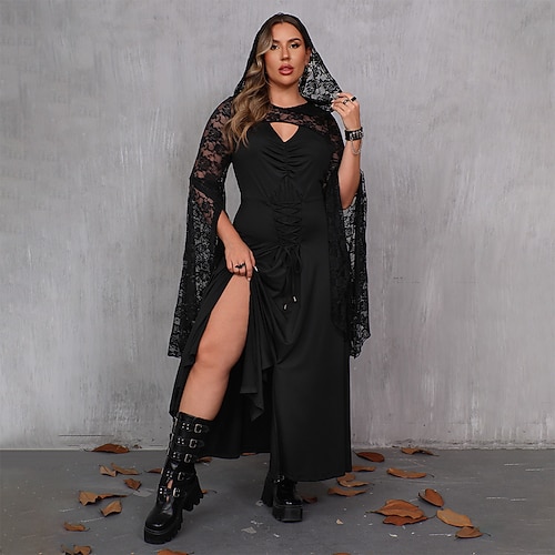 Punk Gotico Maxi Vestito Top con spalline Taglie Forti Manica a Campana Strega Morticia Addams Pizzo Fessura Linea ad A Costume Per donna Halloween Carnevale Performance Feste Adulti Vestito