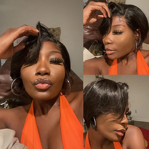 taglio corto bob pixie 13x4x1 parrucche in pizzo capelli umani neri donne trasparenti lisce pizzo frontale capelli brasiliani parrucca wear and go