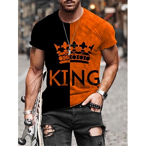 Per uomo Lettera splicing Matrimoniale Maglietta Manica Corta maglietta Stampa 3D Girocollo Camicia Vintage Chic Moderno Essenziale Casual Quotidiano Nero / Giallo Nero / Grigio Bianco Abbigliamento