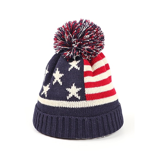 berretto unisex in maglia patriottica con pompon, motivo a stelle e strisce della bandiera americana, morbido berretto invernale in maglia, stile casual da festival, perfetto per il giorno dell'indipendenza e le celebrazioni del 250° anniversario...