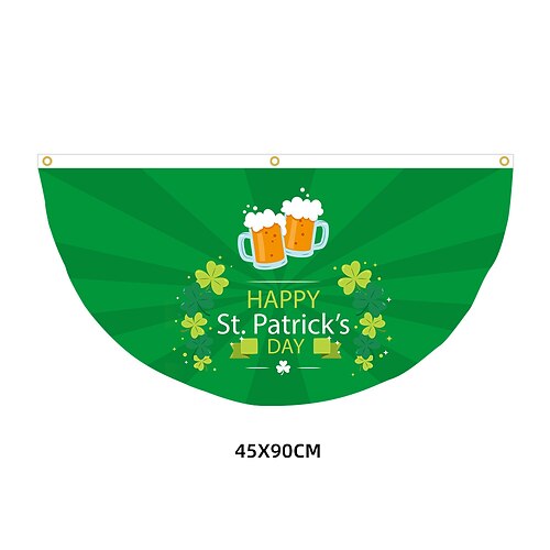 bandiera di San Patrizio, trifoglio irlandese disegno di foglia verde, decorazione di recinzione semicircolare, bandiera irlandese per la festa di San Patrizio, per decorazioni festive all'aperto.