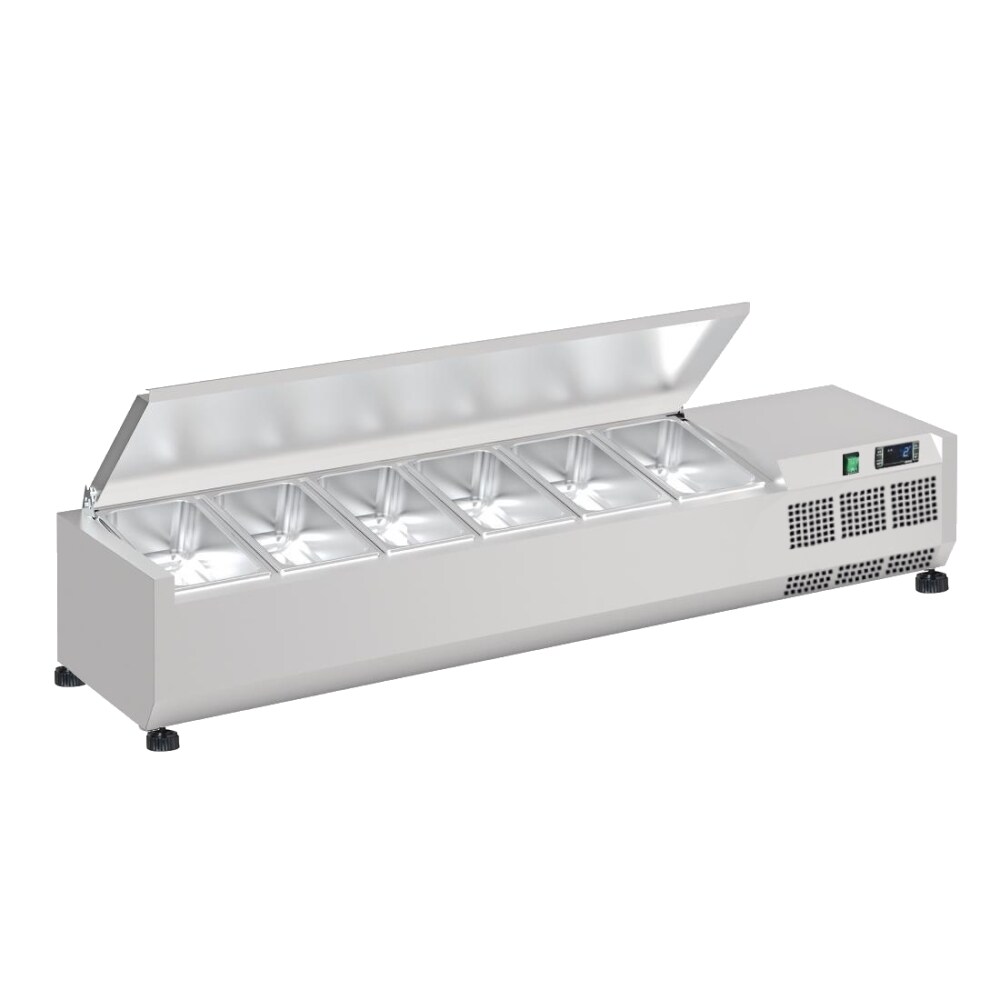 Zutatenkühlschrank mit deckel mit 6 gn 1/4-150 behältern - 1400x335x280 mm - 160 W 230/1V - 761414CT Eurast