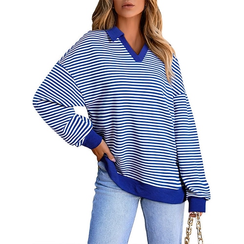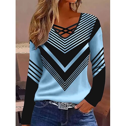 Per donna Maglietta A righe Moda Elegante Classico Manica Lunga Scollo a V Top Regolari Quotidiano Uscire Weekend Blu Nero Verde chiaro Rosso Verde Primavera Autunno