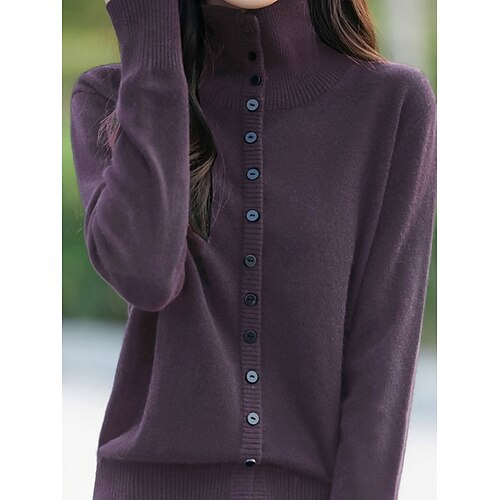 Per donna Felpa Cardigan Elegante Moda Streetwear Colore Puro Dolcevita Bottoni Lavorato a maglia Manica Lunga Top Regolari Maglia All'aperto Quotidiano Weekend Vino Cammello Autunno Inverno