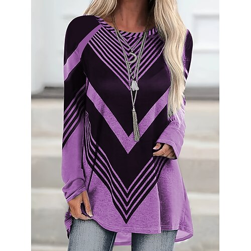 Per donna Maglietta Grafico Geometria Vintage Elegante Moderno Manica Lunga Girocollo Top Regolari Quotidiano Stampato Blu Viola Verde Grigio Autunno Inverno