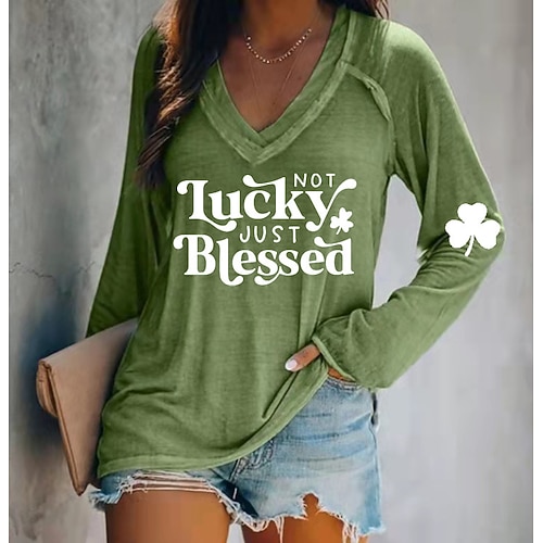 Giorno di San Patrizio Festa di San Patrizio Per donna Maglietta Trifoglio Lettera Moda Manica Lunga Scollo a V Top Regolari Casuale Giorno di San Patrizio Stampato Blu Bianco Rosa Verde Grigio