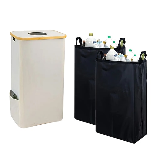Contenitore per la raccolta differenziata con coperchio e sacco interno rimovibile e riutilizzabile, contenitore per la raccolta differenziata in tessuto Oxford con struttura in bambù da 100 litri e